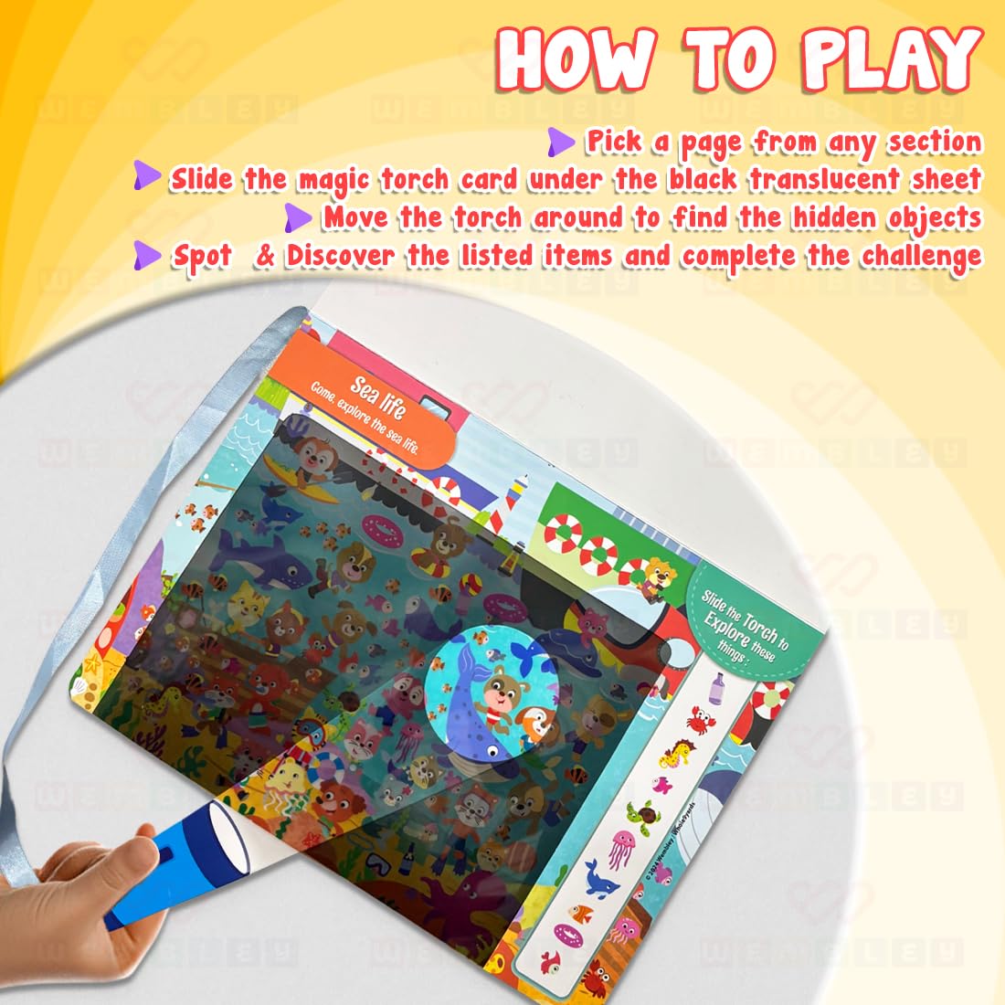Encourage your little one to embark on a fun-filled search and find adventure with our magical interactive activity book. The set is designed to enhance your kid’s sense of discovery, sharpening their observation skills, focus, and patience. The Torch Quest activity set is compact and its travel-friendly design can keep kids engaged for hours anytime, anywhere. Let your child keep searching and peeking with the magical torch to unveil hidden surprises.