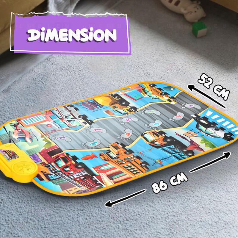 Keep your kid entertained and learning all day with this unique musical play mat featuring fun vehicle sounds. The play mat brings the world of transportation to life with nine distinctive vehicle sound effects. Kids can enjoy an immersive experience as they step on the mat to hear sounds of a fire engine, school bus, helicopter, taxi, police car, and more. The battery-operated play mat is designed with an anti-slip base, a travel-friendly design, and an easy on/off button for smooth and hassle-free play and learning.